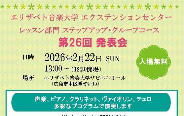 【開催のお知らせ(2/22)】エクステンションセンター レッスン部門ステップアップ・グループコース 第26回発表会